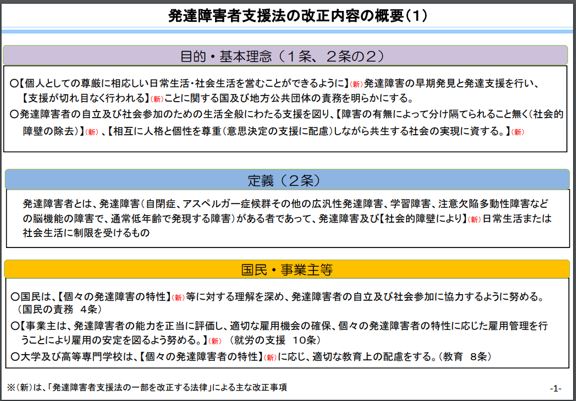 平成17年4月1日に執行された「発達障害者支援法」ですが、その後平成28年に一部改正されています。